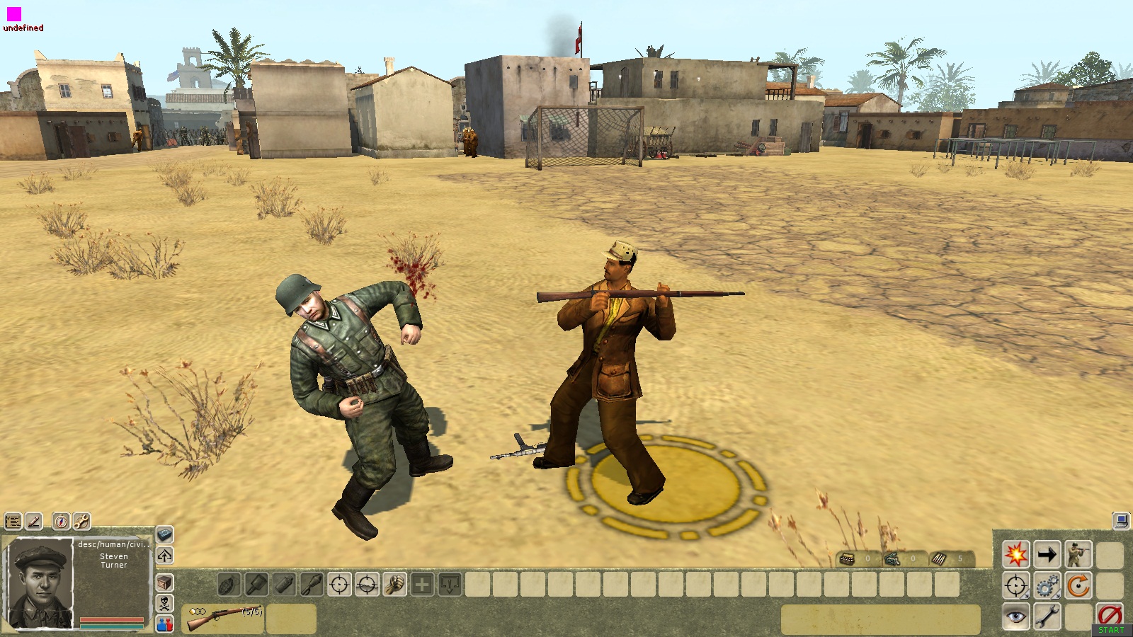 Теперь перенесемся из русской глубинки в жаркую и суровую африканскую пустыню. Группу советских диверсантов отправляют с целью захватить секретные документы. Какие, неважно... Вам предстоит возглавить элиту советской армии- небольшой отряд спецназа из 4 человек. Вам предстоит долгая и тяжёлая дорога через город, к своей цели. Это будет очень непросто, так как в городе идут бои американцев, немцев, и африканских повстанцев, последние особого вреда не доставят,просто сборище негров с винтовками. Американцы хорошо вооружены и подготовлены, но их мало. Самый опасный враг- немцы так как у них есть танки. Улицы очень узкие и много тупиков, так что прежде чем куда-то пойти два раза подумайте, а то если напоретесь на пулемёт или баррикады шансов выжить будет немного. Ещё в одном из домов заперты пленные русские солдаты- вторая группа диверсантов. Желательно их спасти. И последний совет- прежде чем начинать играть осмотрите всю карту. Удачи!