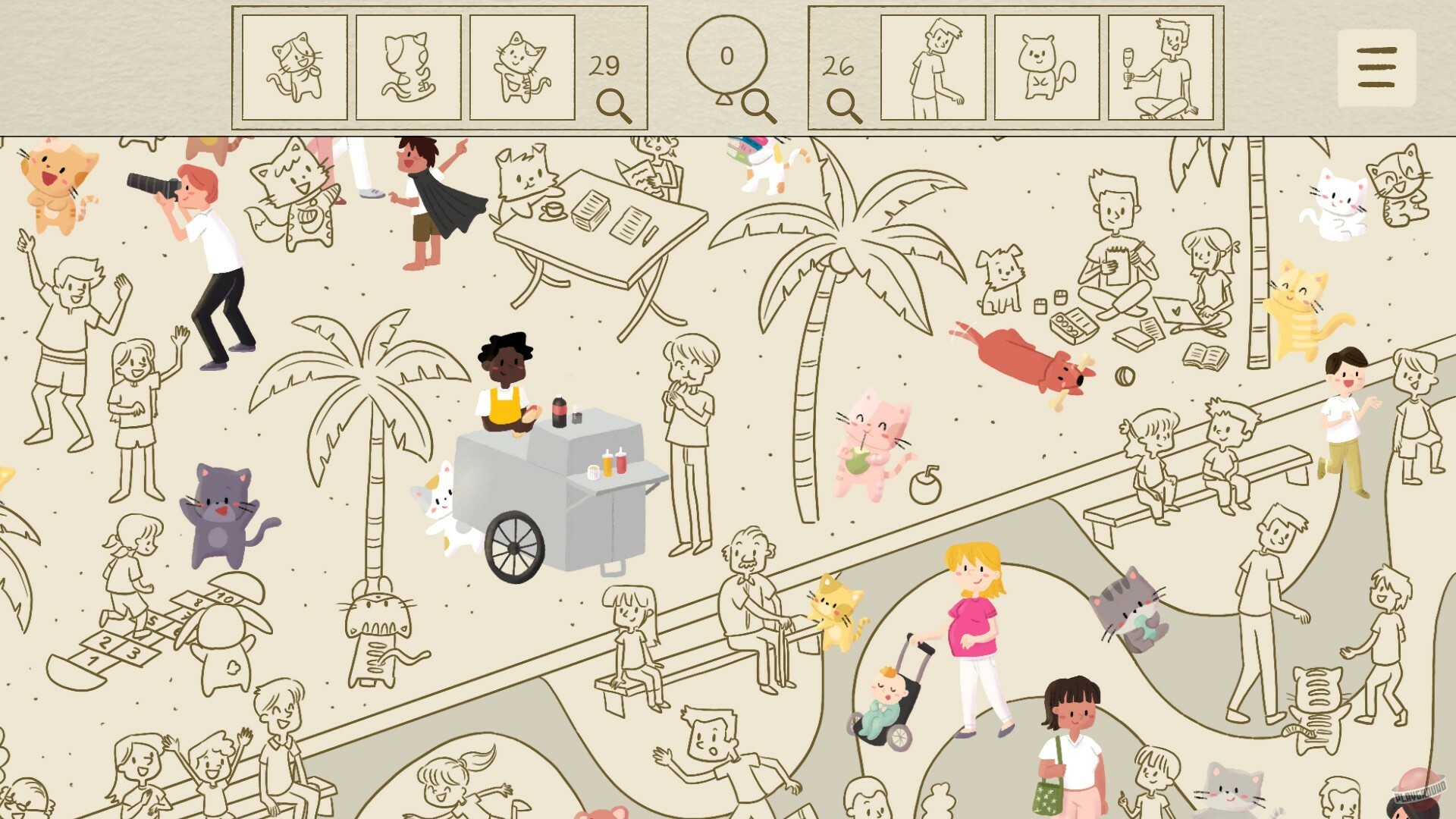 Поиск кошек и друзей среди красочных праздничных сцен.