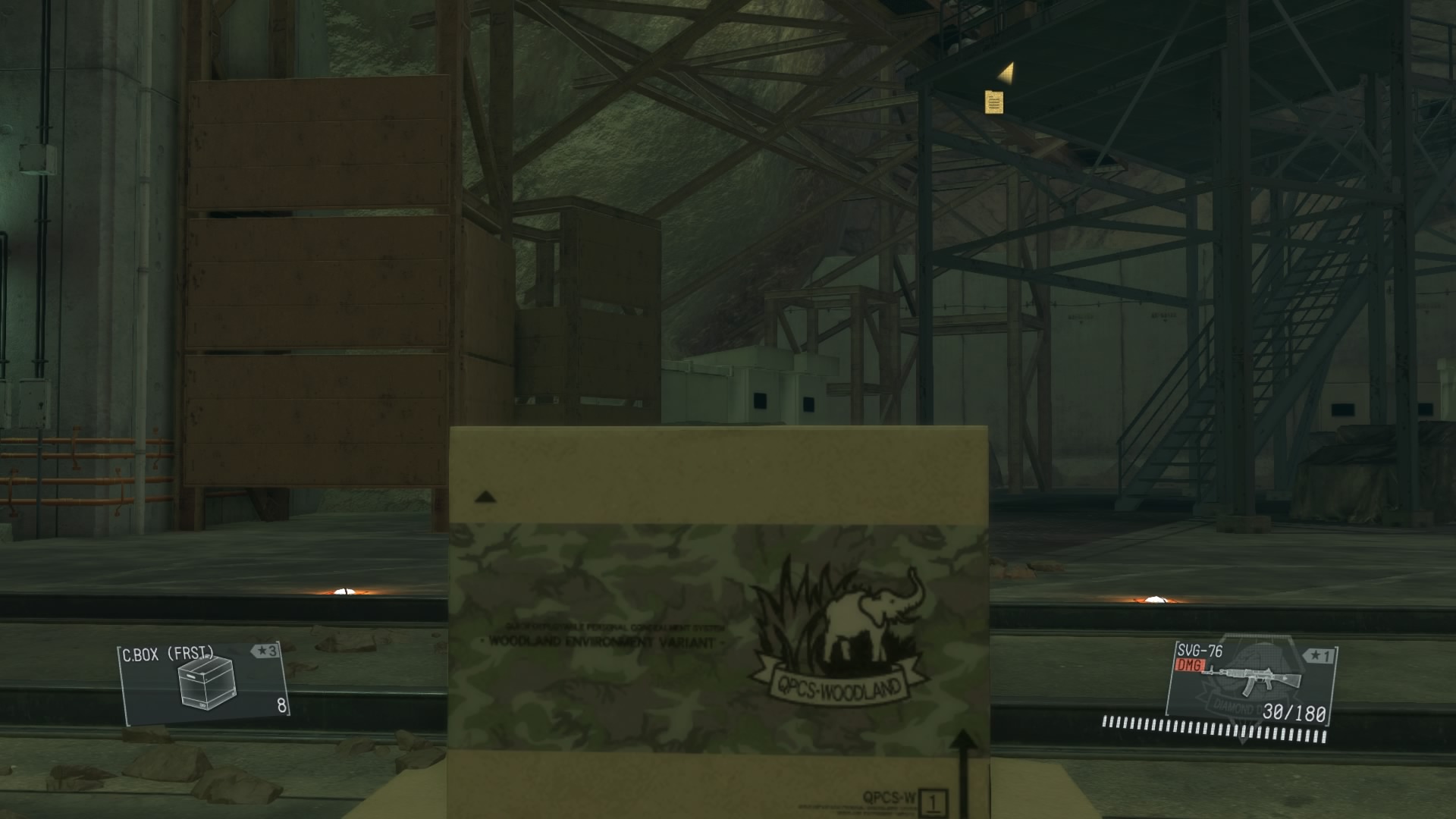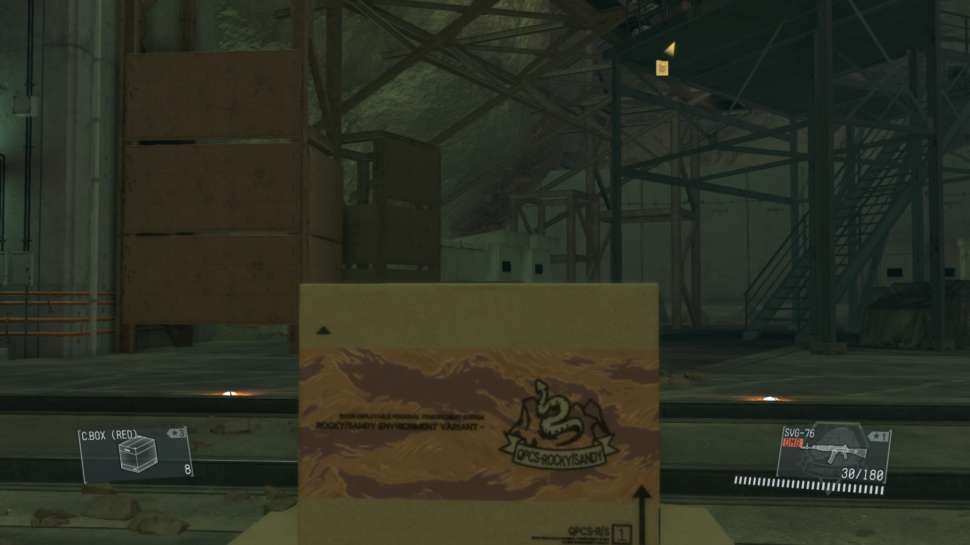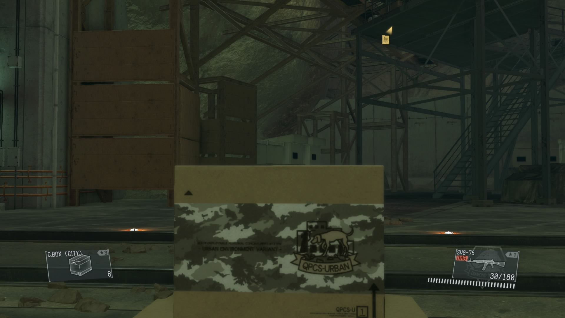 Картонная коробка, с нанесенным на неё городским камуфляжем. Наиболее полезна при использовании во время миссий в поселках или в крупных базах, так как коробка идеально сливается с бетоном и железом.