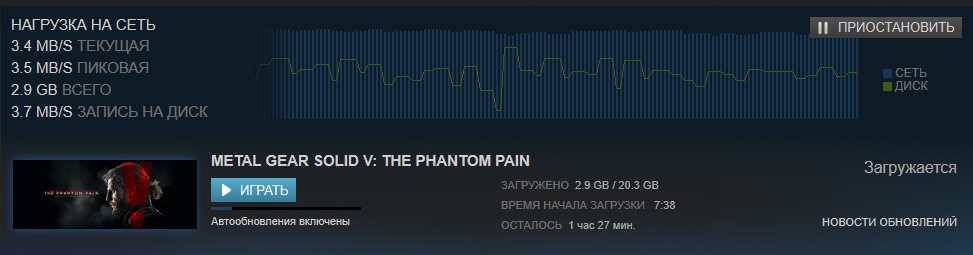 В сервисе Steam стартовала загрузка MGS5: The Phantom Pain. До этого сотрудники Конами подтвердили в Твиттере, что загрузка стартует в 7:00 по МСК. А я напомню, что игра стоит в Steam 1200 рублей и весит около 22 гигабайт. Игра разрабатывалась на новом движке, в котором реализован открытый мир, что внесет в серию абсолютно новый геймплей, а что там с сюжетом? Ну, скачаем и оценим. Вперед!