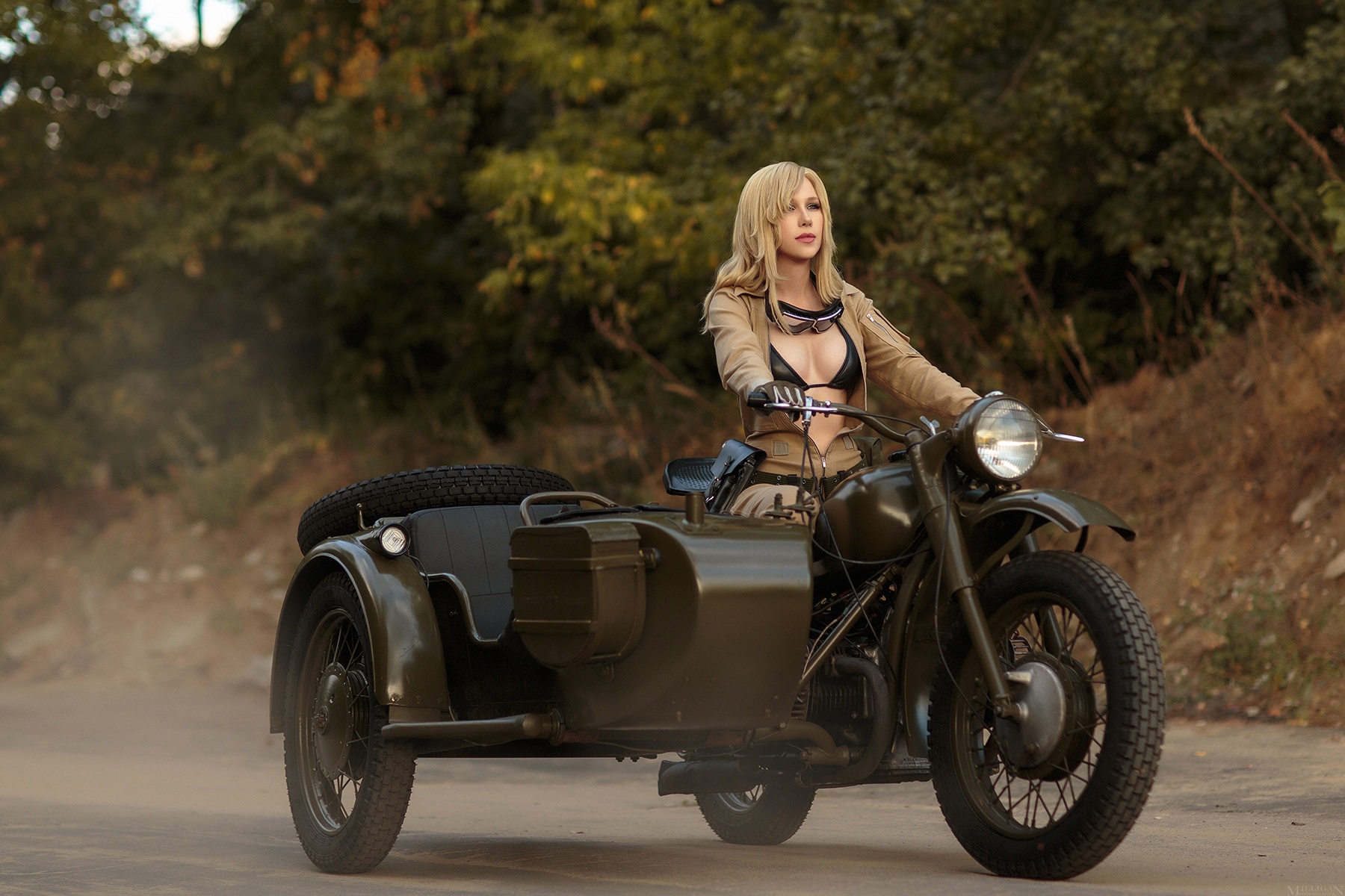 Девушка очень интересной внешности, ну и мотоцикл конечно - классика. Не играл в Metal Gear, поэтому напишите похожа или нет. Даже если это был бы не косплей, фотосет очень хороший!