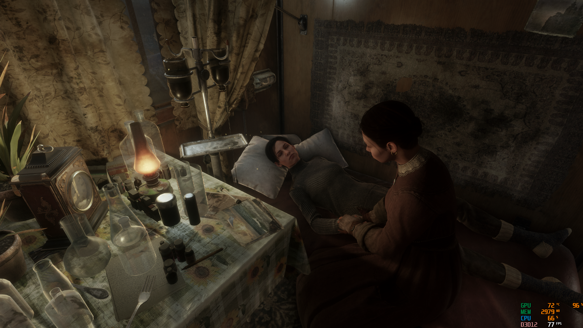 Кат-сцена. Артём и Аня. Ане плохо, Катя дала ей наркоз, та уснула.
