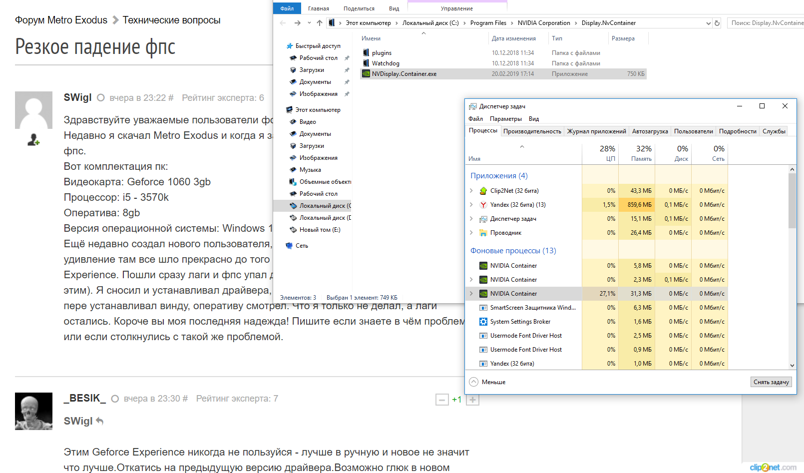 Ещё недавно создал нового пользователя, попробовал поиграть на нем и на моё удивление там все шло прекрасно до того момента как я не решил открыть Geforce Experience. Пошли сразу лаги и фпс упал до 10 (врядли конечно это связано с этим). Я сносил и устанавливал драйвера, менял термопасту, проверял на вирусы, пере устанавливал винду, оперативу смотрел. Что я только не делал, а лаги остались. Короче вы моя последняя надежда! Пишите если знаете в чём проблема или если столкнулись с такой же проблемой.