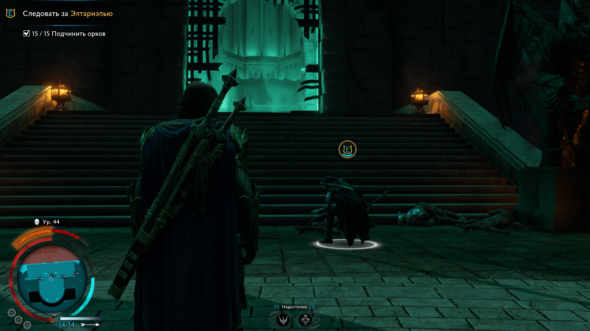 В общем, дошёл до крепости в минас моргуле, а назгул не появляется, элтариель просто стоит там и всё, таки что делать?