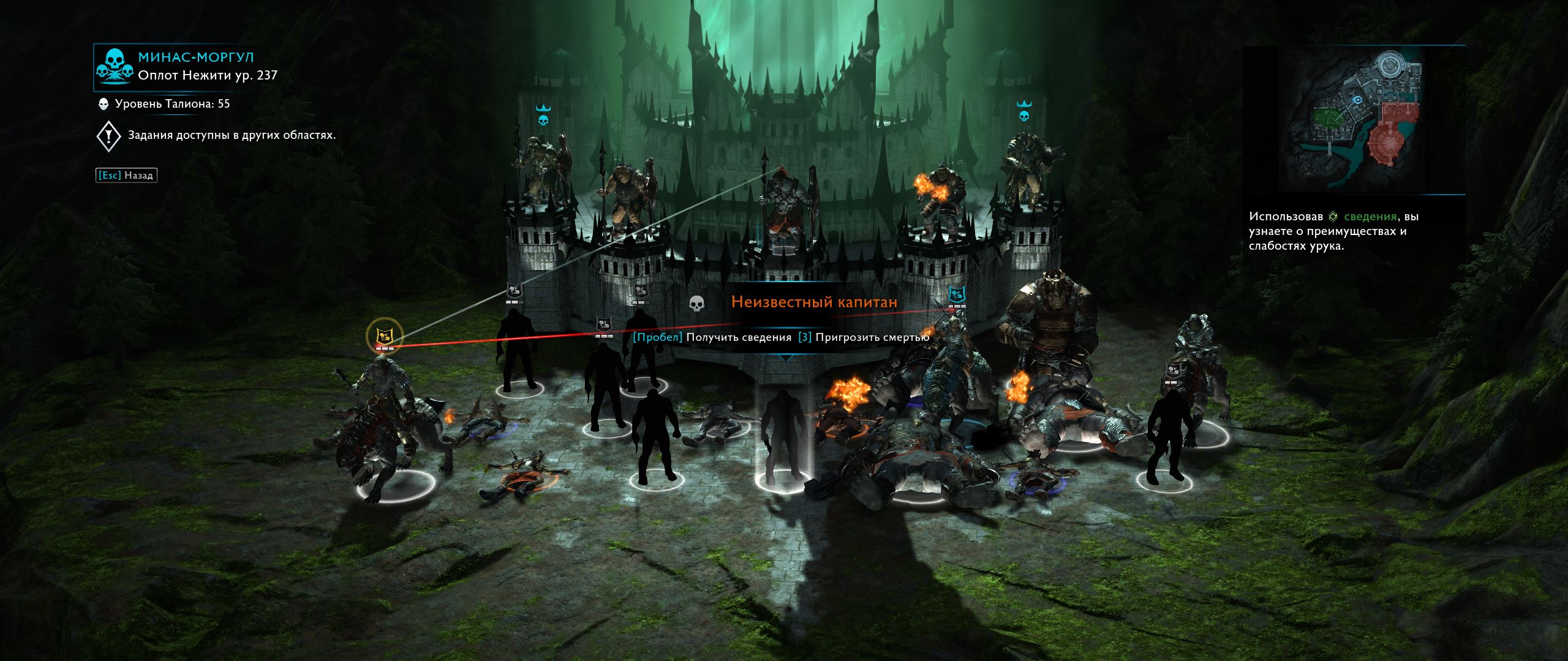 У меня то же самое капитан-вождь в минас моргуле стоит тенью притом у него три моих шпиона(которые до того были сгенерены рандомно) мне его не рассекретить не придать ни чего с нмэтм не сделать