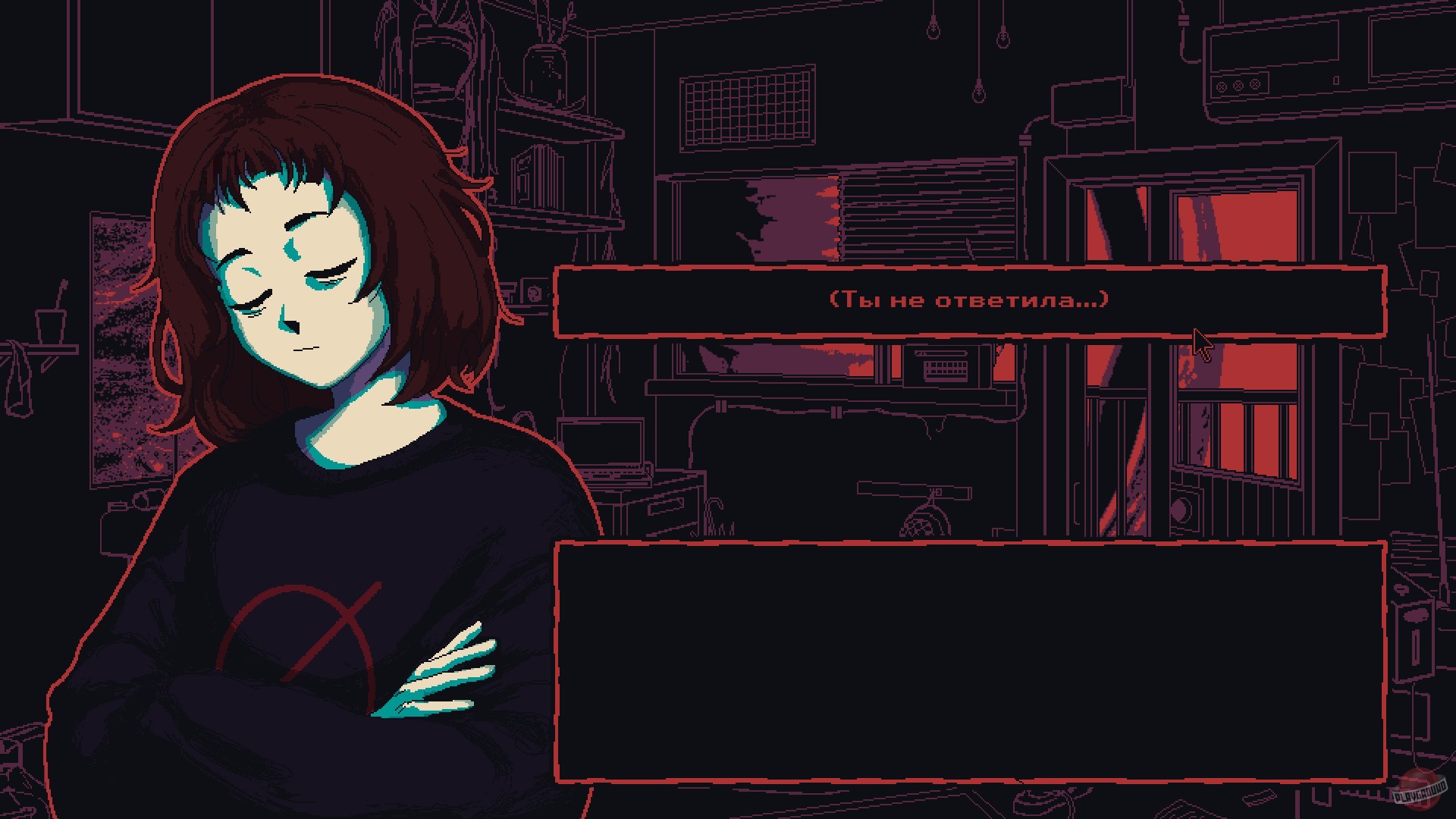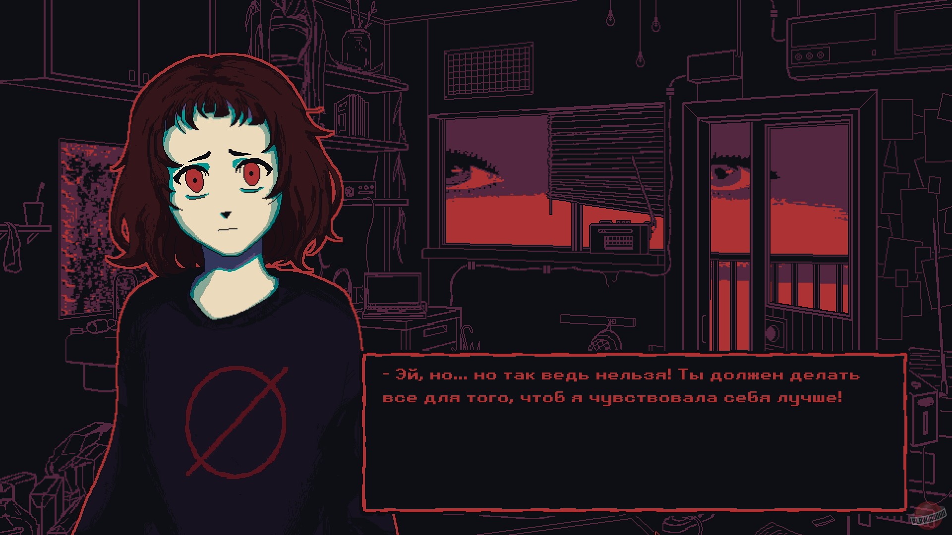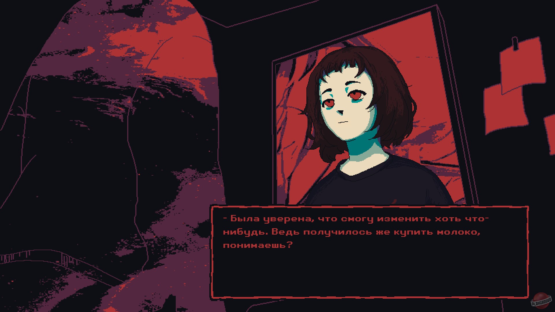Графика всё та же — пиксельная, но она тут не просто так, а чтобы показать, насколько искажённо главная героиня воспринимает мир.