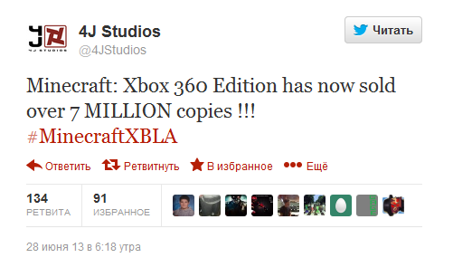 4J Studios написали в Твиттере о том, что было продано более 7 миллионов копий Minecraft: Xbox 360 Edition.