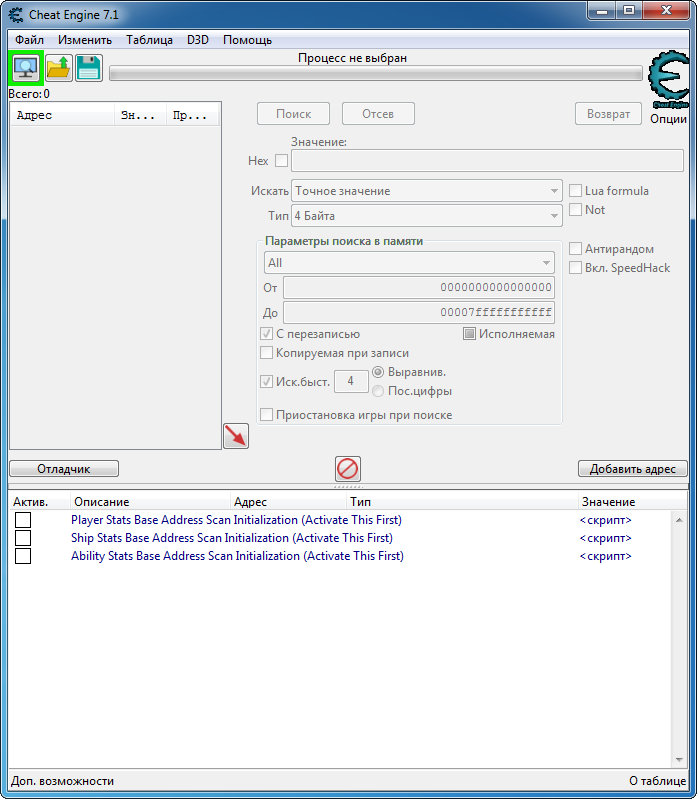 1. Запустить Cheat Engine, "Load" и выбрать таблицу