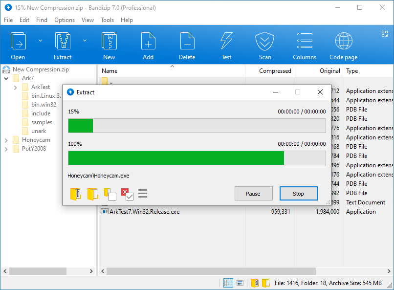 Bandizip — универсальный архиватор файлов для Windows и macOS, которые имеет ряд дополнительных функций и отличную скорость распаковки данных. Программа обеспечивает многотомное и высокопроизводительное сжатие и высокоскоростное сжатие с использованием многоядерного процессора. Для создания архива утилита способна использовать более чем 10 форматов (ZIP, 7Z, EXE, ISO и т.д.) При этом архиватор способен распознавать, читать и извлекать более 40 форматов: 7Z, ACE, AES, ALZ, ARJ, BH, BIN, BR, BZ, BZ2, CAB, Compound(MSI), DAA(1.0), DEB, EGG, GZ, IMG, ISO, ISZ, LHA, LZ, LZH, LZMA, PMA, RAR, RAR5, SFX(EXE), TAR, TBZ/TBZ2, TGZ, TLZ, TXZ, UDF, WIM, XPI, XZ, Z, ZIP, ZIPX, ZPAQ, PEA, UU, UUE, XXE, ASAR, ZSTD, NSIS, LZ4.