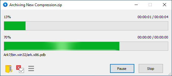 - Перемещение фалов: Запустите Bandizip → Выберите файлы для сжатия → Перетащите файлы в окно Bandizip → Настройки архива (Задайте имя и путь к архиву) → Запустить → Закрыть