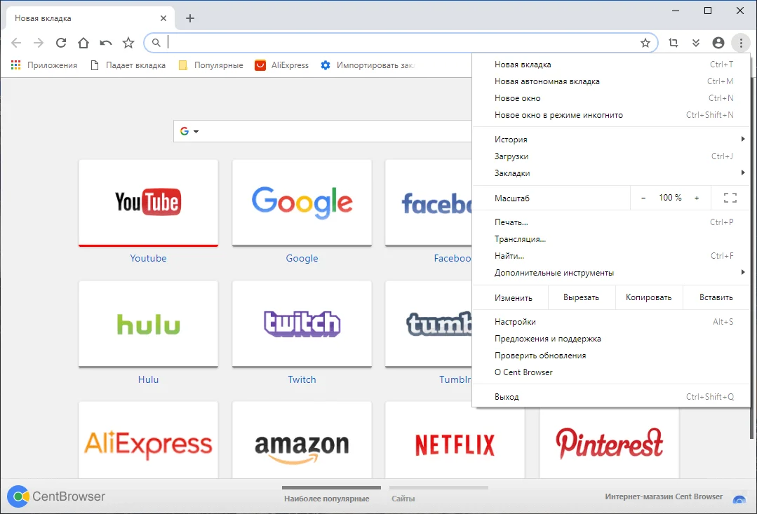 Основан на базе Google Chrome: Cent Browser построен на популярной платформе Chromium, а значит наследует все преимущества Google Chrome