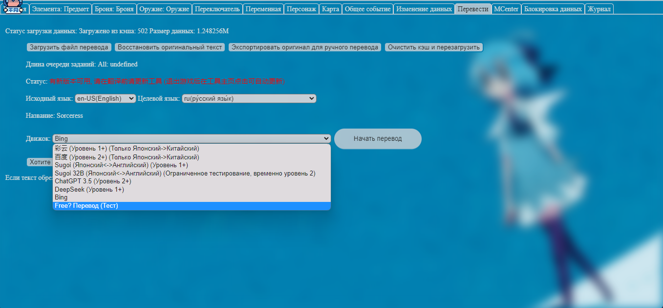- Мгновенный перевод: Автоматический перевод всех текстов в игре одним нажатием кнопки. Поддерживаются различные профессиональные движки перевода.
