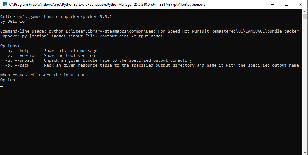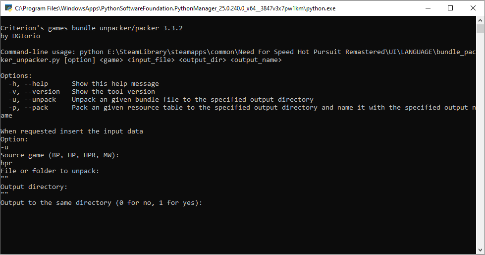 - Откройте "bundle_packer_unpacker.py" через командную строку;