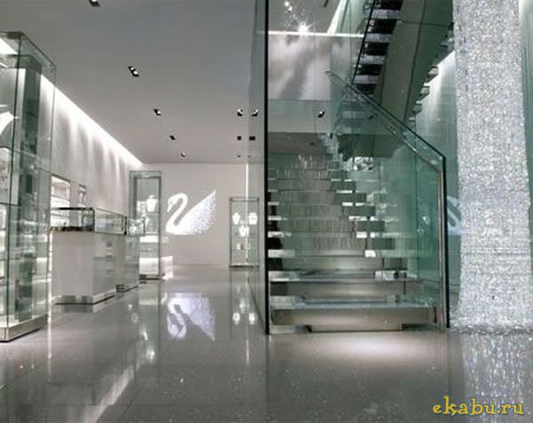 Магазин Swarovski в Токио ослепляет своих покупателей не только товаром, но и зеркальным фасадом, и дизайном интерьера под названием "Кристальный лес"