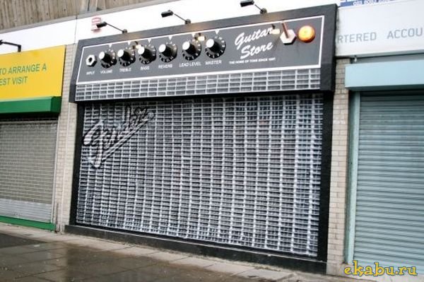 Фасад лондонского магазина, торгующего электрогитарами, выполнен в виде гитарного усилителя.