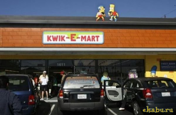 В преддверии запуска в кинотеатрах полнометражного мультфильма «The Simpsons Movie» международная сеть супермаркетов 7-Eleven временно переименовала дюжину своих торговых точек в Северной Америке в «Kwik-E-Mart» - вымышленный бренд из мультсериала «The Simpsons» («Симпсоны»). В 6 тысячах супермаркетов Северной Америки продавались Buzz Cola, хлопья KrustyO's и напитки Squishees