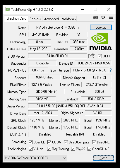 Вид Карта: GIGABYTE GeForce RTX 3060 Ti GAMING OC 8G (разогнанная)