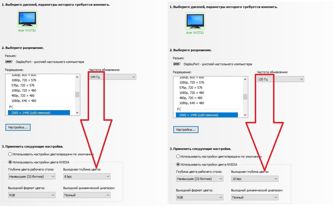 Вопрос - когда 144гц поставить можно только 8bpc а когда 120гц то 10bpc, так и должно быть?