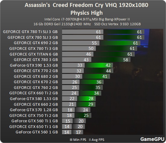 На 780 все идет отлично с физиксом, в отсасине только падало в самых критичных моментах до 24 , в борде 2 и Бэтмане 60 стабильно.