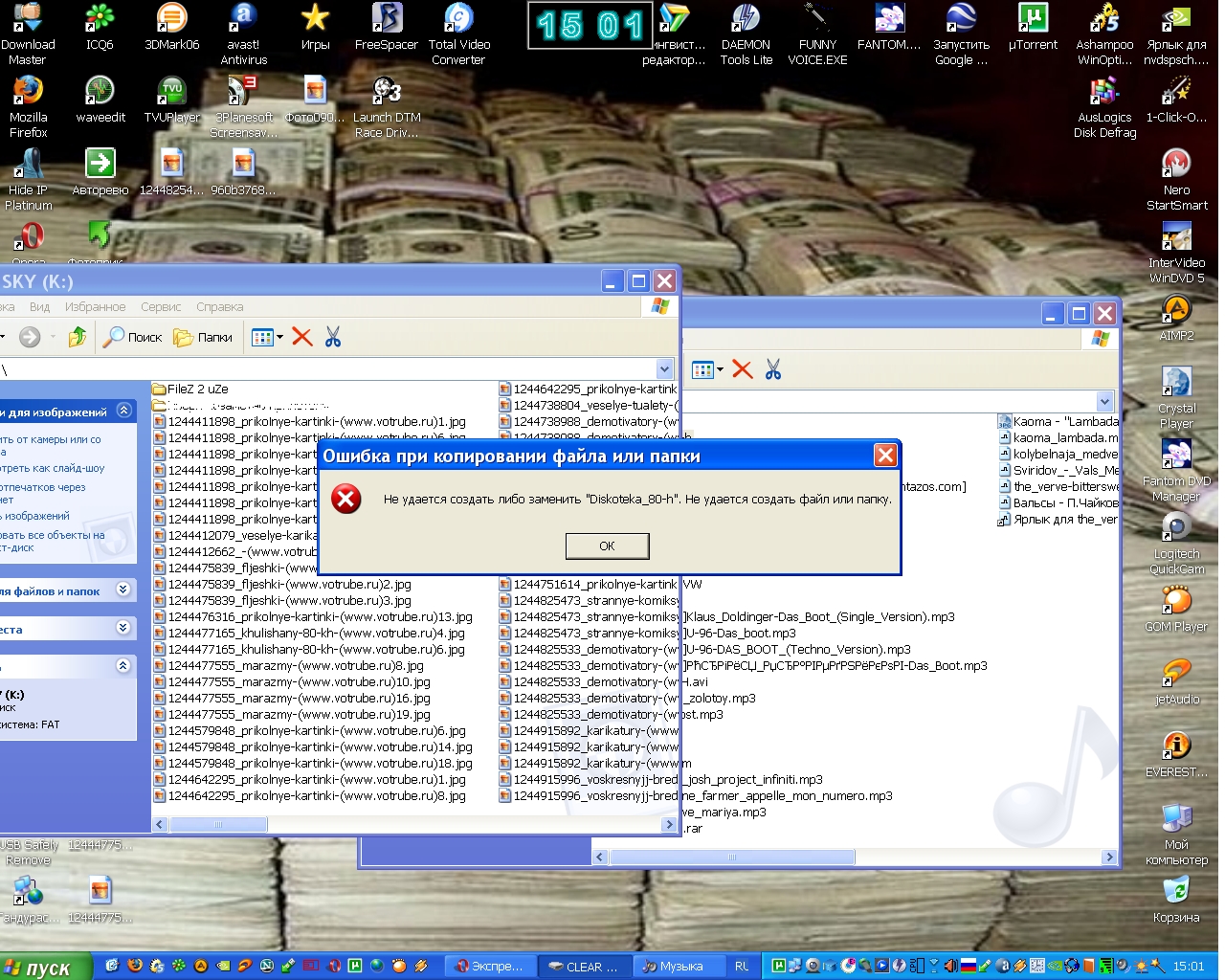 Ребята, тездец. При работе с Оперой сохраняю картинки с сайтов на флешку. Периодически случается, что диалоговое окно "сохранить как..." зависает, а потом Опера ругается, что флешка загажена. Чесслово, на ней еще 1,21 гб! а при попытке че-то записать из Проводника вот это вылезает: