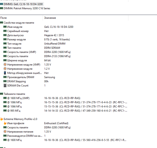 Всем привет. В октябре друг подарил ряженку и планку Geil, купил к нему Системная плата ASRock B450M Pro4 и планку патриот скрины есть, проц сделал в 3.9, напруга была 1.37000 как поставила плата ничего не трогал, память кинул в хмп 3200 все запустилось все работало до вчера. Полетели синие экраны и стоп экраны, комп офался, делал 3 писка, включался без разгонов и с 8гб память, с доп резервом 8гб, потыкал планки туда сюда, на стоке запускалось 2133, потом вроде с разгоном все снова включилось, чутка погонял тесты и ушел спать, сегодня снова сел та же картина, стоп экраны и блю скрины, гуглик коды первая причина это что-то с память, при том вроде аиду и мем тест включаю ничего не вылазиет, поиграю минут 5 буквально и сразу ловлю блю скрин. Пробовал с 1 планкой патриота включится, зашел в игру, вылетел из нее и снова блю скрин, то ли я что-то угробил, то ли не знаю что делать и куда идти Периодические попытки выставить память выше 2133 заканчиваются 3 писком, намек на проблемы с геил? На самой минимальной частоте стартует, но держится не дольше 10 минут