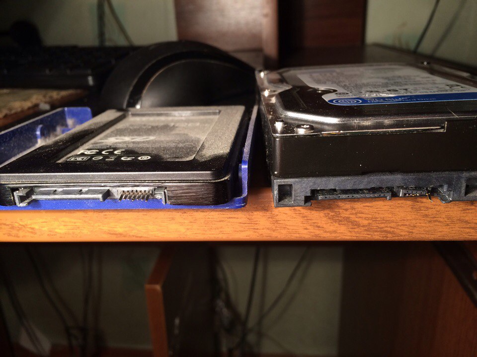 Я нашёл кое-что интересное. На снимке хорошо видно сата разъёмы на ссд и на хдд. Они оба сломаны. Я даже не знаю как так могло получится. Наверно из-за спешки корявых ручёнков :) Я отдал в другой сервисный центр комп. И я попросил чётко мастеру проверить БП при нагрузке. Он говорит,что всё с ним нормально. Ну вольтаж ,все дела. Может из-за этих разъёмов ребутается комп при нагрузке? И разъёмы просто поменять и тогда не надо покупать новый БП. М?