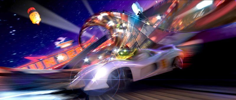 В ролях: Эмиль Хирш (Спиди), Кристина Риччи (Трикси), Мэттью Фокс (Гонщик Икс), Сьюзан Сарандон, Джон Гудман, Скотт Портер, Мельвиль Пупо, Rain, Ричард Раундтри, Хироюки Санада, Бенно Фюрманн, Роджер Эллэм, Питер Фернандес, Кик Герри, Косма Шива Хэйген, Поли Литт, Ю Нань, Кристиан Оливер, Найо Уоллес