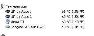 Я не знаю, какая предельная температура у моего проца и видеокарты, но я ее посмотрел в EVEREST'е и GPU-Z в режиме покоя (при заходе в Windows) и нагрузки (когда я нахожусь непосредственно в игре)