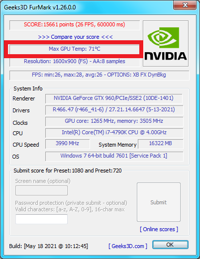 но принципе можно сильно нахлобучить видеокарту температурой немного другими задачами поэтому при разгоне не стоит уповать безоговорочно на этот фурмарк.