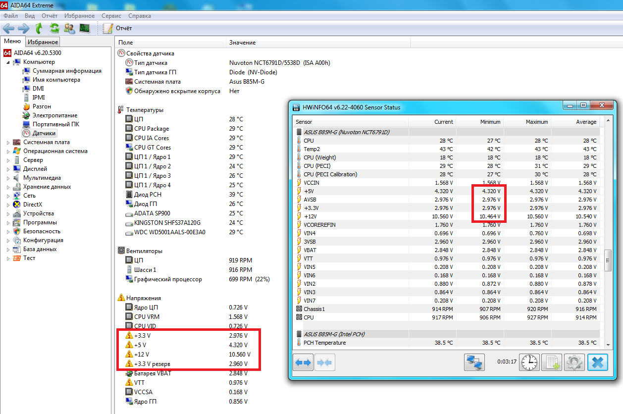 Я так же некоторое время назад думал: вытянет ли старый БП (500 Вт, 2010 г. покупки), если обновлю видяху. Думал-думал, но случилось закономерное: как-то во время игры комп внезапно перезагрузился. После перезагрузки появилась надпись о скачке напряжения на линии + 12 В - в материнке сработала защита. Поглядел в UEFI и винде, увидел такое: