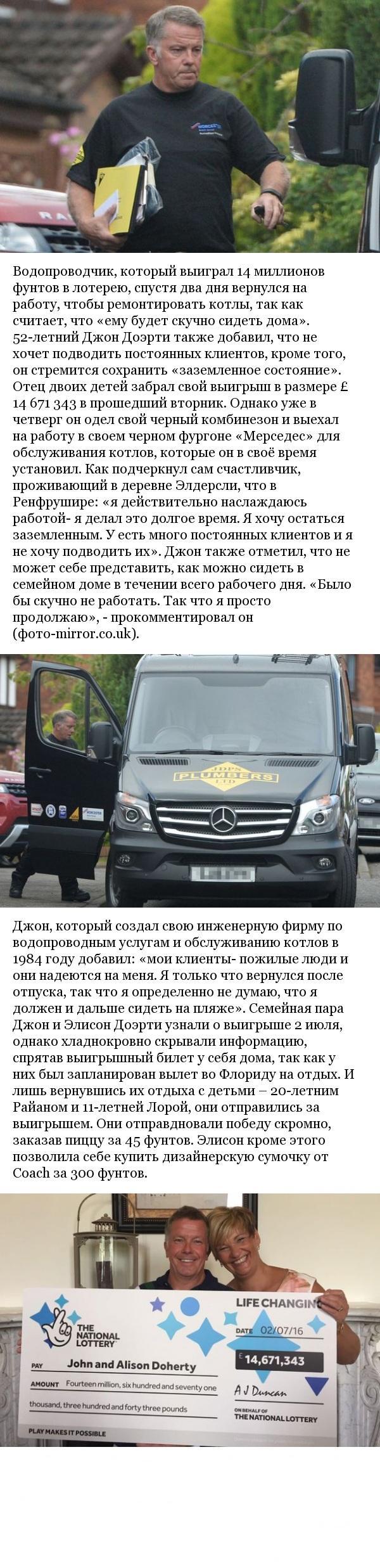 Вполне нормальный мужичок старой закалки, который наверняка работать начал с ранних лет. Это счас принято в обществе потребителей сидеть на мамкиной/папкиной шее, уткнувшись целый день в компуктер и постить подобные темы, считая себя пупом земли. А таких работяг считать идиотами. В кои то веки выиграл походу человек, который действительно сумеет справиться с таким "счастьем".