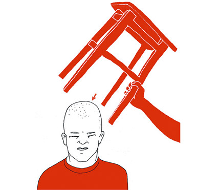 Избиение табуретом (весит от 3 до 5 кг) по голове. Применяется военнослужащими, занимающими привилегированное положение, в качестве меры наказания за непослушание. Распространено во всех родах войск.