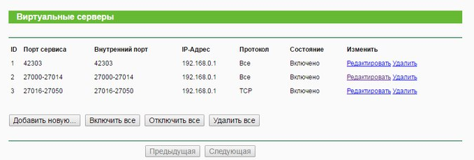 Собственно как? У меня роутер tp-link, захожу в веб интерфейс по вот этой херне 192.168.0.1, через переадресацию делаю виртуальные сервера, они отображаются как включенные, но все равно ко мне на сервер невозможно подключится, так как его нет. Конкретно хотел поиграть с другом в The Hunter:Primal, там при создании сервера пишет, нужно открыть поты 27015 и 42303, открываю их через веб интерфейс, ничего не меняется, что я делаю не так