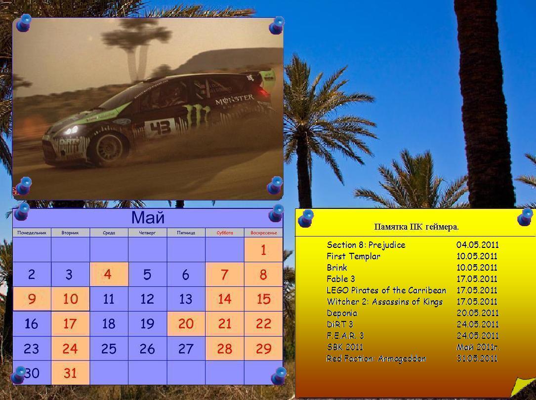 В связи с переносом Бринка на 10 мая отправляю в тираж очередной выпуск календариков. Без Л.А. Нойре, т.к. он выходит только на боксе и плойке.