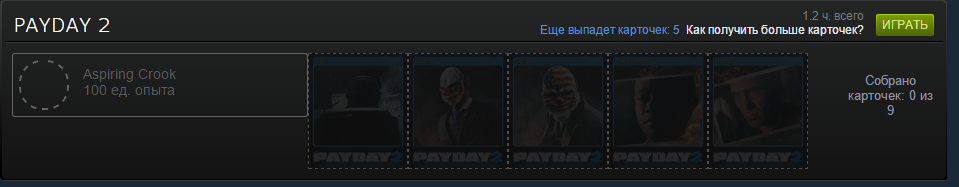 Всем привет я особо не следил за обновами клиента Steam, но что то странное заметил. Вот купил недавно PayDay 2 в этой игре должны падать карточки. Итого с тех пор я 71 минуту как видите провёл в игре но не одна карточка мне не выпала.