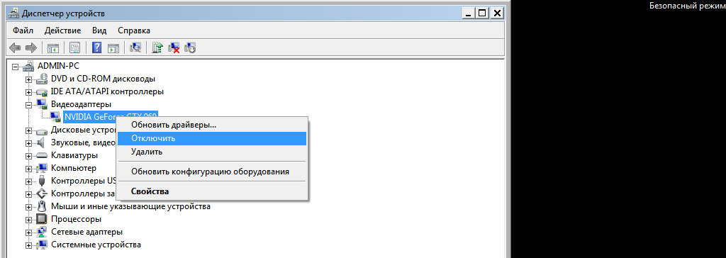 4) Дождаться загрузки ОС, зайти в диспетчер устройств и попытаться отключить...