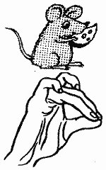 • накрывать мышь ладонью так, чтобы ее нижняя часть находилась у запястья;