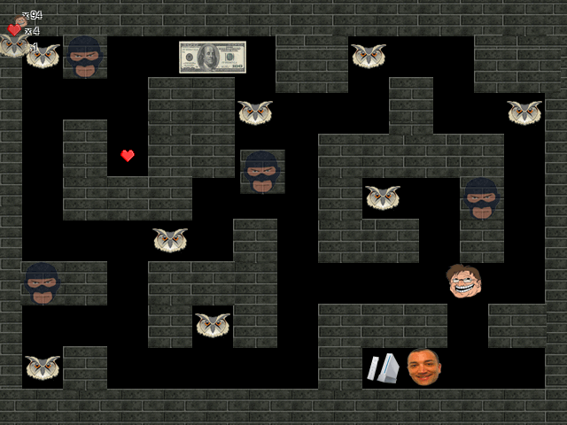 Но вообще-то, игры, которые создаются за 1-2 вечера, не должны показываться людям. Хотя, конечно, вышло забавно, я полностью одолел "приключения Гейба" чисто ради того, чтобы почитать межуровненые сообщения. Вот даже ненароком скрин последнего уровня сделал (вообще-то, я искал как сохраниться, потому что не мог одолеть его и хотел выйти из игры):