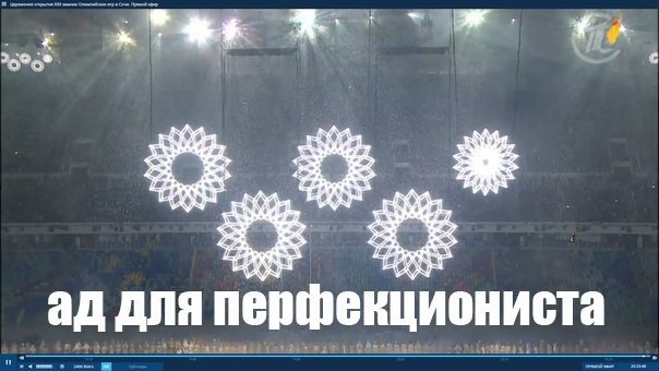 Вот смотрю на все это действие и думаю: Это сколько же бабла вложено в то, что можно назвать только одним словом - показуха. "Россия - великая страна, все живут настолько хорошо(не хуже чем в Европе и Америке), что могут позволить себе подобную роскошь и кинуть "лишние" деньги из бюджета на грандиозное строительство и не мение грандиозное представление" - вот что должны думать иностранцы, посетившие олимпийские игры. Конечно, зачем поднимать экономику, ВВП, выплачивать зарплаты рабочим, пенсии пенсионерам, сделать нормальные дороги, парки, убрать мусор с улиц, профинансировать науку, искуство, наконец сконструировать нормальный мощный легковой автомобиль, который конкурировал на мировом автопроме. Нет, мы завтра будем жрать говно, но сегодня покажем миру, что Россия не хуже других(а может даже и лучше).