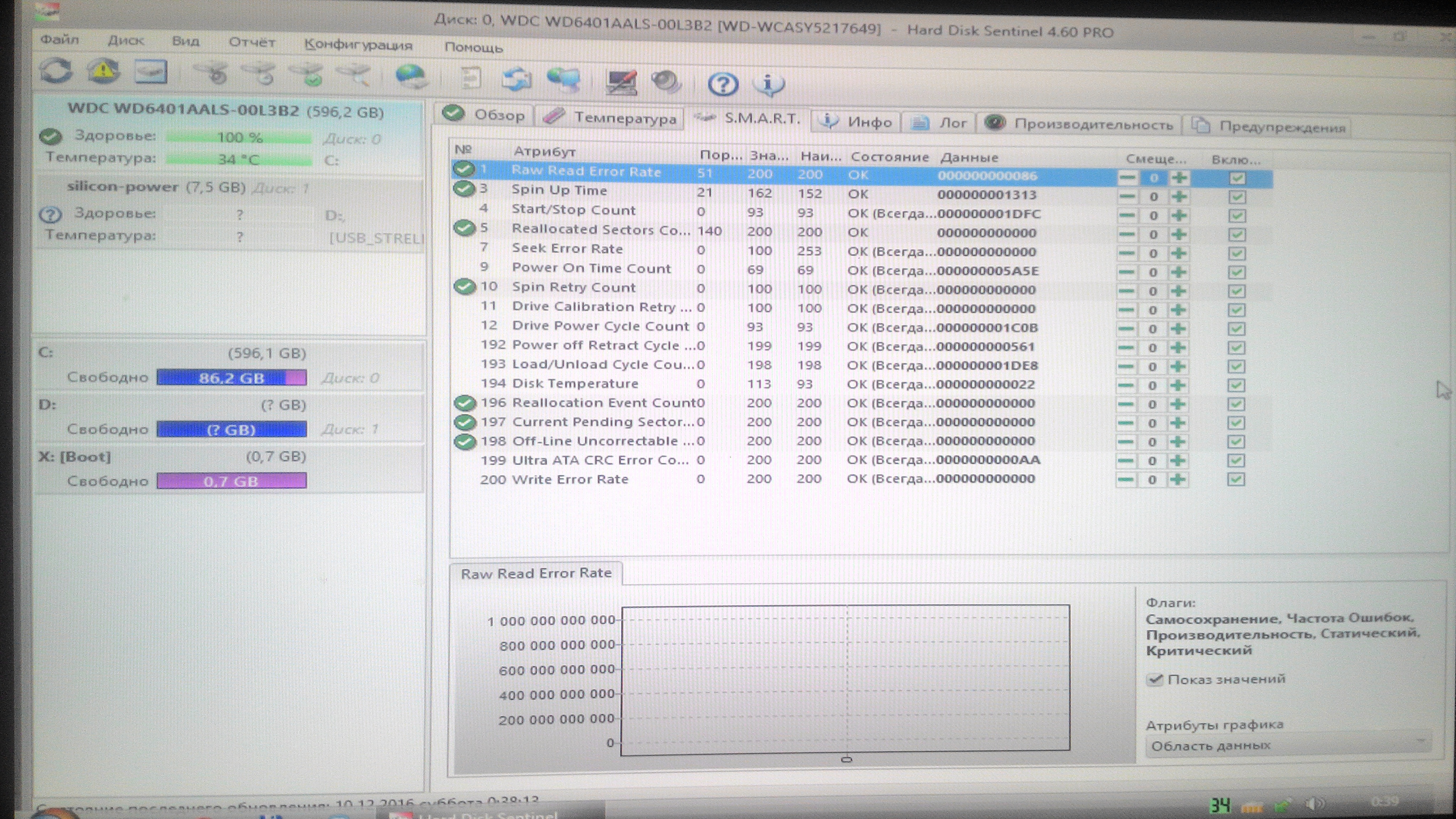 И ещё программа HDDRegenerator Atributte 3: Spin-Up Time тоже не понятно что за крестик!???