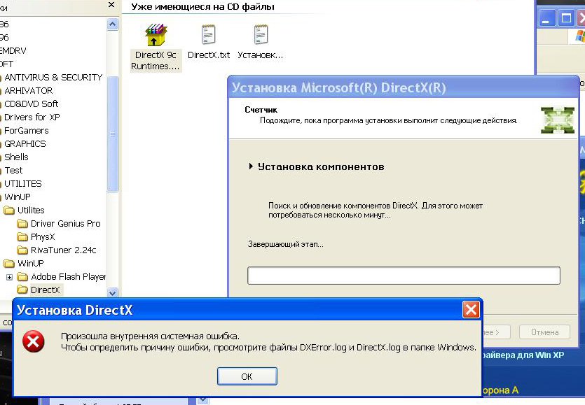 Вкратце история такова: поменял видеокарту с ATI на nVidea; удалил драйвера с помощью программы DriverCleaner с фильтрами Ati и NVideo; с офсайта установил новый драйвер на видюху. Попутно решил обновить "ДиректХ.9"....и вот - вылетает сообщение:"Произошла внутренняя системная ошибка". Вчастности "Скайрим" стал "взрываться" яркой краской (жёлтой) и вылетать через пять мин игры, ГТА вообще не подаёт признаков жизни, пашет только "Сталкер"... Проверял на вирусы он-лайн и установленным д-р Вебом, вроде чисто,только на кряки ругается....Короче, всё плохо:( . Что я мог напортачить? Операционка Виндовз ХР, в-карта GT630 (Polit), процессор AMD Athlon два ядра 2,7Ггерц. Есть ли какой-нибудь выход?