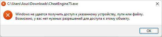Ошибка при запуске Cheat Engine