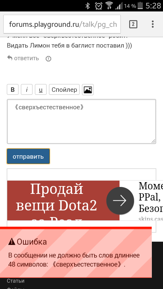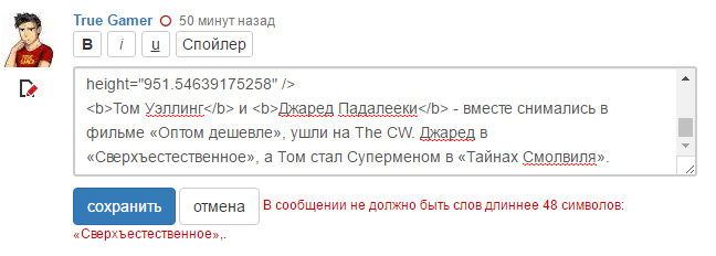 Странно. Даже если учесть, что кавычки-«ёлочки» передаются кодами & #171; и & #187;, всё равно меньше 48 символов получается. А с программистскими кавычками проходит: "Сверхъестественное",. Попробуй написать в саппорт (кнопка «Обратная связь» внизу страницы).