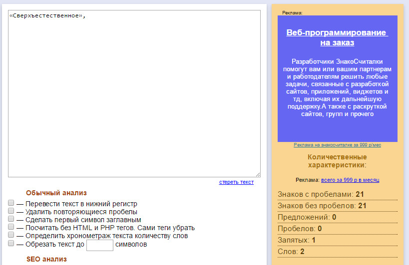 «Сверхъестественное» — пропускает, а если добавить запятую, то нет.