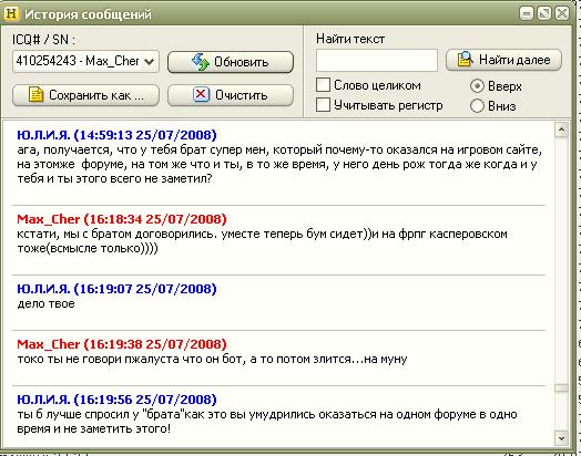 Как-то одним обычным днем я узрела в «Клубе» ботов некого юзера, которые не навязчиво беседовали между собой. Я имела честь общаться с этим человеком в асе и он не вызвал никаких отрицательных и негативных эмоций. По-этому я решила поинтересоваться у него в ЛС отчего ж он общается сам с собой? Неужели все на столько плохо, что приходиться вот так себя развлекать?