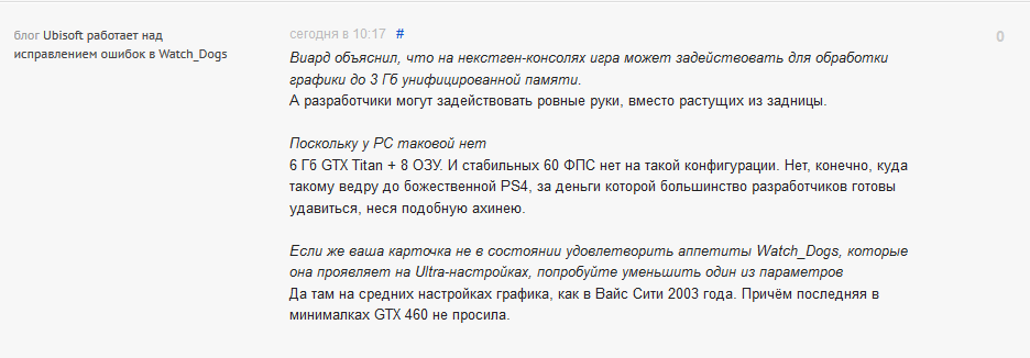 Ведь вышел к примеру Watch Dogs и на пс3, и на пк, но вот почему-то на последнем он требует неимоверную кучу ресурсов