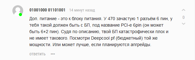кто-то может объяснить как работает доп питание, я хочу взять себе rx 470 либо rx 570, а у меня бп 1stPlayer 450 plus и я хз пойдёт ли, и я хз типо доп питание должно быть разьёмом в бп, либо кабели решают всё, или это вообще зависит от материнки. Уже второй день ищу ответы нигде ничего не написано(