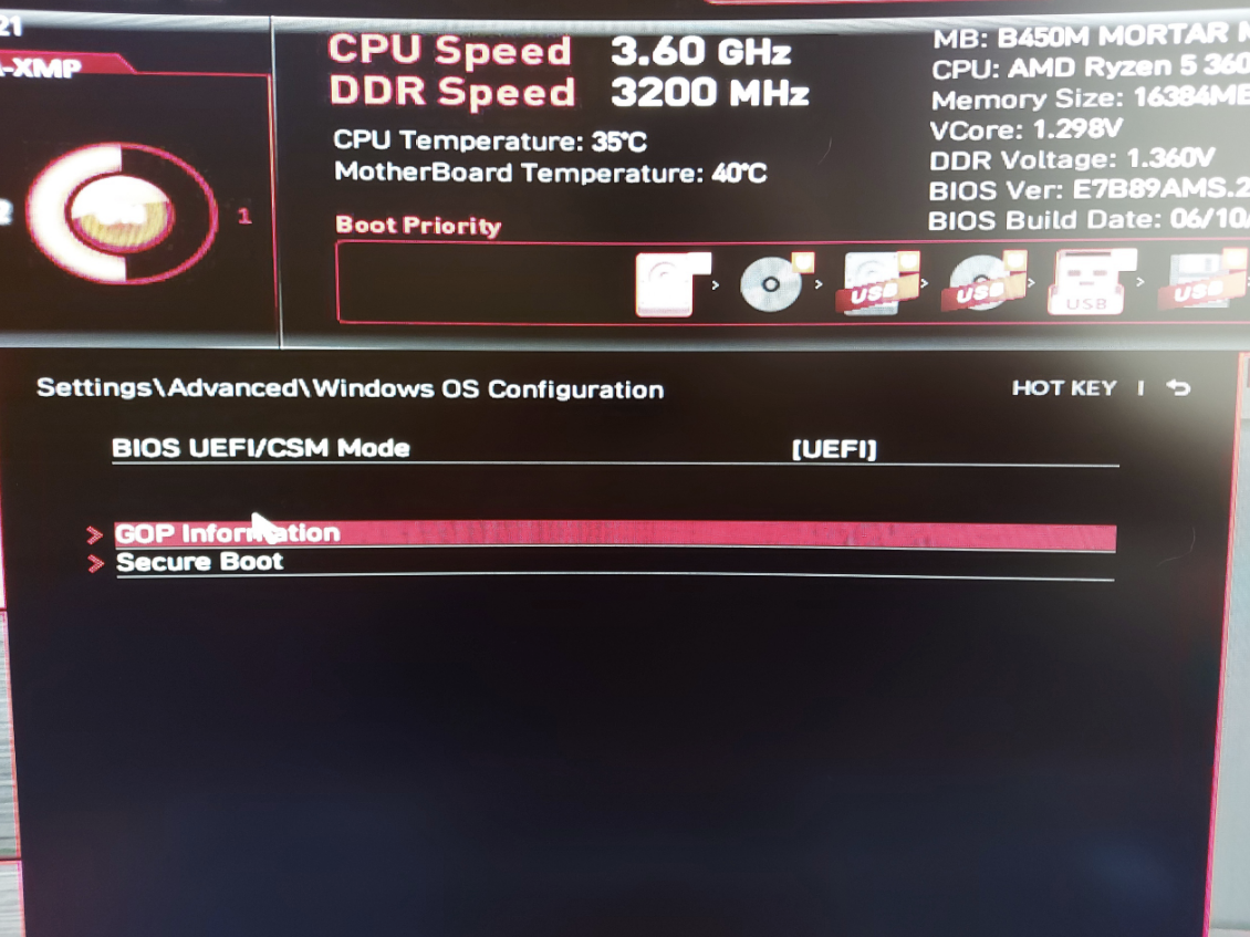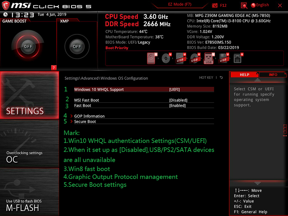 А вот на следующем скриншоте отключи обе функции "Msi fast boot" и "fast boot".