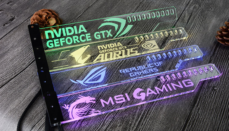 А как на счёт опоры для видеокарты со своим принтом и подсветкой (хотя есть и обычная стойка):
