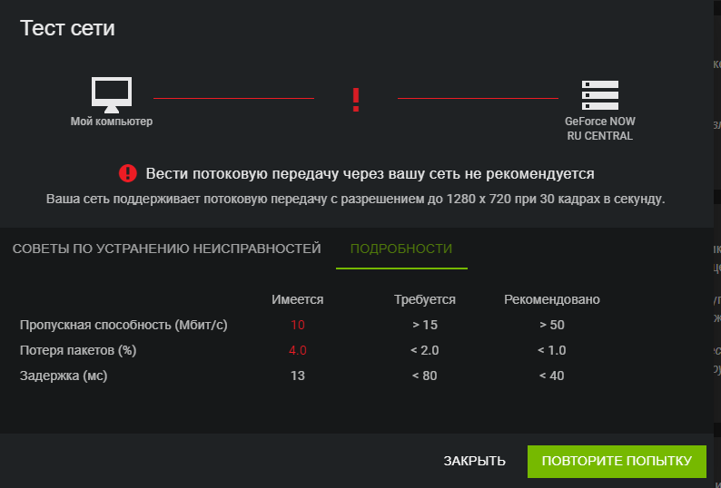 GFN не видит потенциал всего моего интернета.Пропускная способность моего интернета: 100 мбит/c ( см. скрин)А GFN лишь берет в расчет 10 мбит/c ( cм. скрин)как решить эту проблему